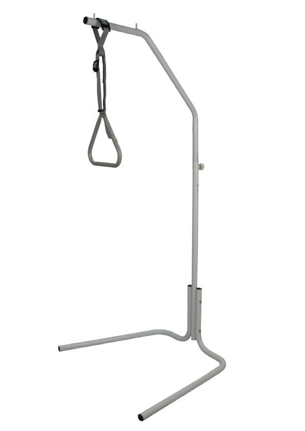 Alzamalati da letto con base della ditta Termigea, dispositivo universale di sostegno con base da pavimento, la sua struttura le permette di adattarsi a qualunque letto. L'ausilio è destinato alle persone che hanno difficoltà a coricarsi o ad alzarsi dal letto, una comoda maniglia assicura al paziente una solida presa. Molto diffuso in ambito domiciliare o ospedaliero.