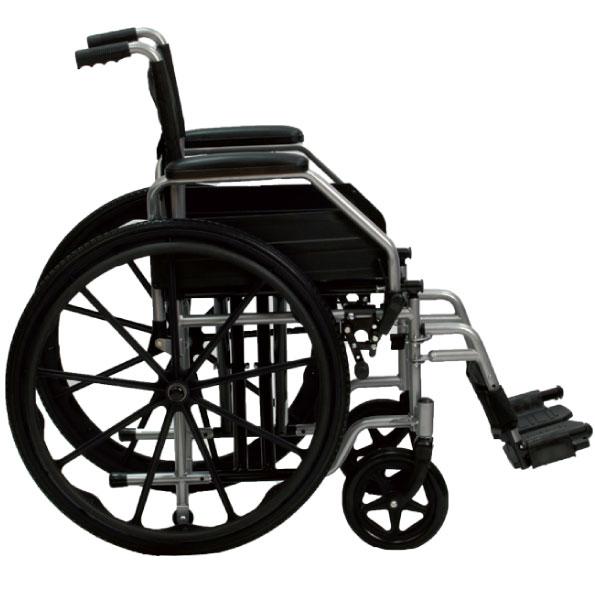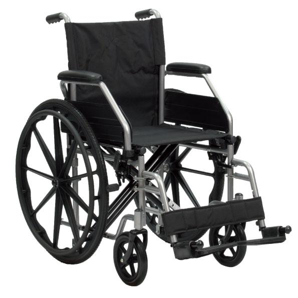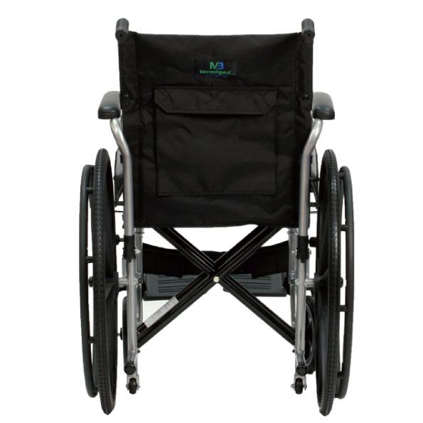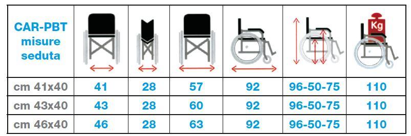 Carrozzina passaggi stretti pieghevole autospinta. Le ruote posteriori sono poste sotto la seduta allo scopo di limitarne l'ingombro che in questo modo è di soltanto 52 cm. Particolarmente adatta in spazi angusti e nella maggior parte dei casi consente il passaggio dalle porte degli ascensori. Caratteristiche di serie: Telaio pieghevole di acciaio verniciato in colore grigi Fiancate estraibili di serie tipo desk con copri bracciolo dall’imbottitura morbida. Pedane regolabili in altezza, ribaltabili ed estraibili. Ferma-polpacci. Ruote posteriori pneumatiche da autospinta, mm. 500 di diametro, con corrimano. Ruote anteriori in PU di mm. 200 di diametro. Misura di seduta: cm. 40,5. Larghezza totale: cm. 52 Tasca porta-oggetti posteriore. Peso: kg. 15,5 circa. Peso massimo sopportato: kg. 100.