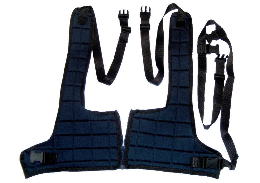 Cintura di bloccaggio a corpetto con imbottitura pettorale in tessuto trapuntato. Colore nero taglia unica. Cod. classificazione ISO: 12.24.06.139 RDM: 258234