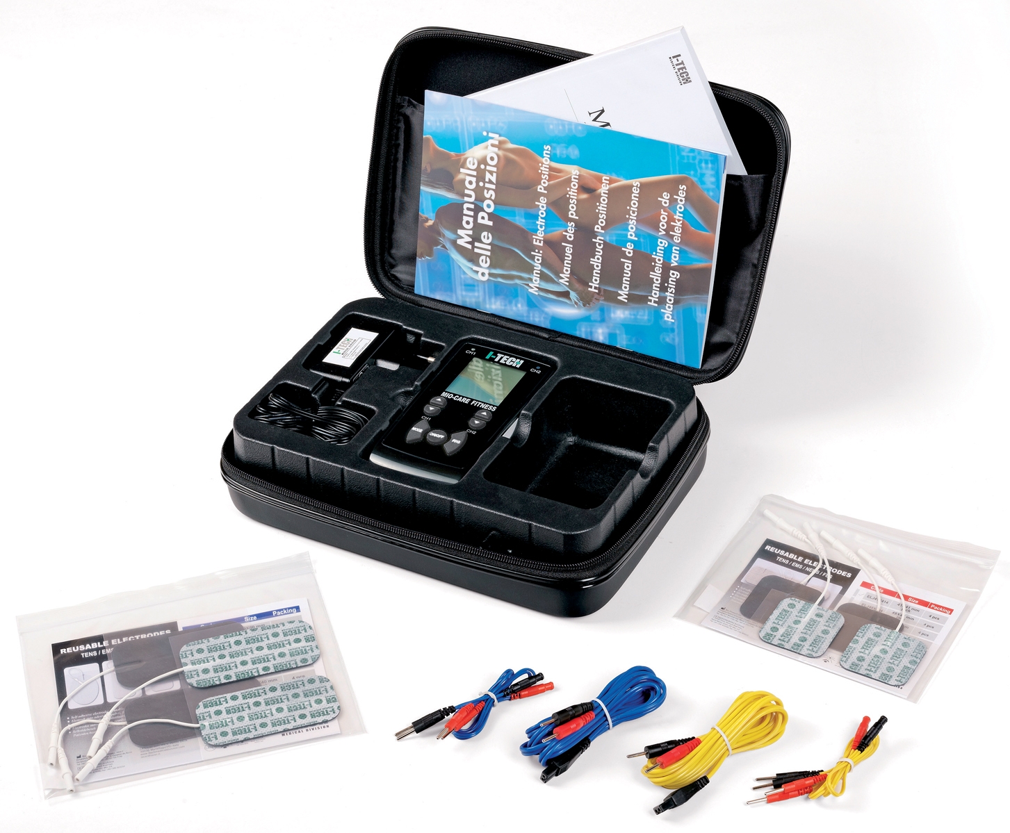 elettrostimolatore a 2 canali con possibilità di collegare fino a 8 elettrodi