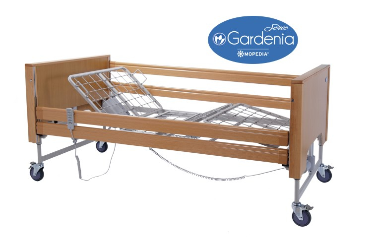 Il letto da degenza in legno tre snodi Trendeleburg ha una struttura interna in tubolare di acciaio verniciato a polveri e una struttura esterna in legno. Il letto ha una rete elettrosaldata al perimetro e dispone di quattro ruote piroettanti da 125 mm con blocco totale. Il prodotto ha alzatesta e poggiagambe regolabili tramite due attuatori elettrici ed è possibile regolarne l'altezza a tre funzioni: elevazione in piano - trendelenborg - contro trendelemburg. L'altezza è variabile attraverso due attuatori alloggiati nella testata del letto e regolabili sia singolarmente che contemporaneamente.