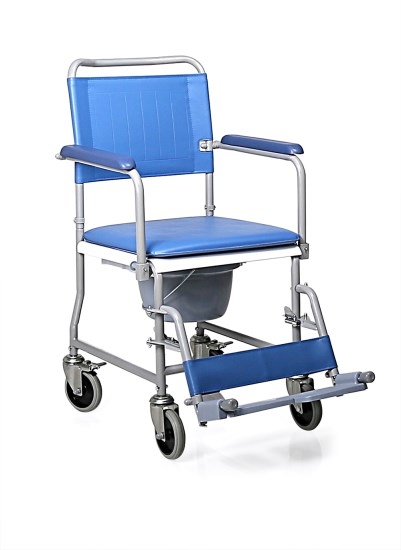 La sedia comoda con ruote è un prodotto duraturo e di semplice impiego. La struttura è in acciaio verniciato grigio, un materiale resistente con portata massima di 120kg. La sedia ha uno schienale smontabile, braccioli ribaltabili imbottiti e seduta imbottita in semipelle. Tutti materiali facilmente lavabili. Inoltre, il prodotto dispone di WC in plastica con coperchio e pedane per i piedi ribaltabili e regolabili in altezza. La sedia possiede infine 4 ruote piroettanti di cui 2 con freno, per un utilizzo semplice e alla portata di tutti.