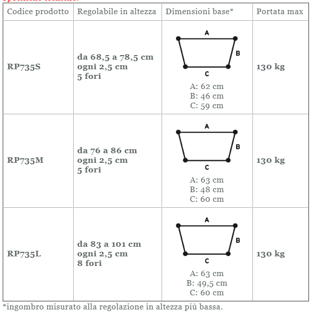 Per le caratteristiche tecniche e i diversi modelli si prega di consultare l'immagine allegata.