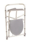 La sedia comoda è realizzata in alluminio anodizzato e ha struttura pieghevole, per occupare meno spazio durante l'inutilizzo. Le gambe, regolabili in altezza, terminano con puntali antiscivolo in gomma. La sedia è pensata per garantire il massimo della comodità al paziente: la seduta è realizzata in polietilene e possiede braccioli e contenitore in plastica. La sedia può essere utilizzata in quattro modi diversi: rialzo per water, supporto per water, sedia comoda e sedile per doccia.