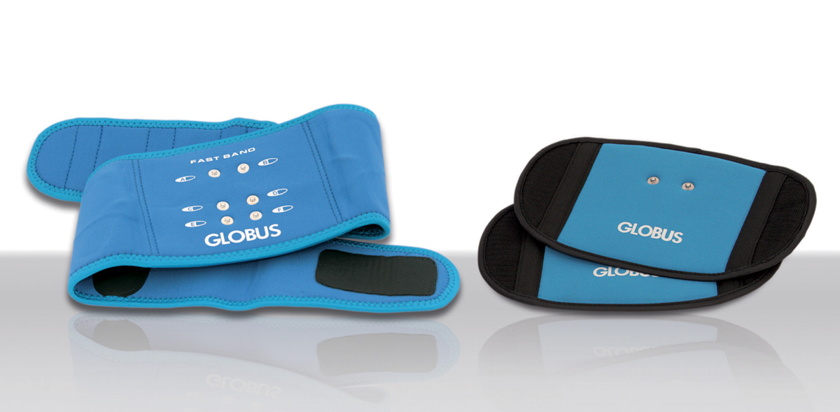 Fast band e fast pad sono fasce che si collegano facilmente a tutti gli elettrostimolatori globus a 2 e 4 canali. Con la fast band, senza utilizzare gli elettrodi classici, puoi stimolare in modo semplice ed efficace i muscoli addominali ed obliqui, la zona lombare ed i glutei.