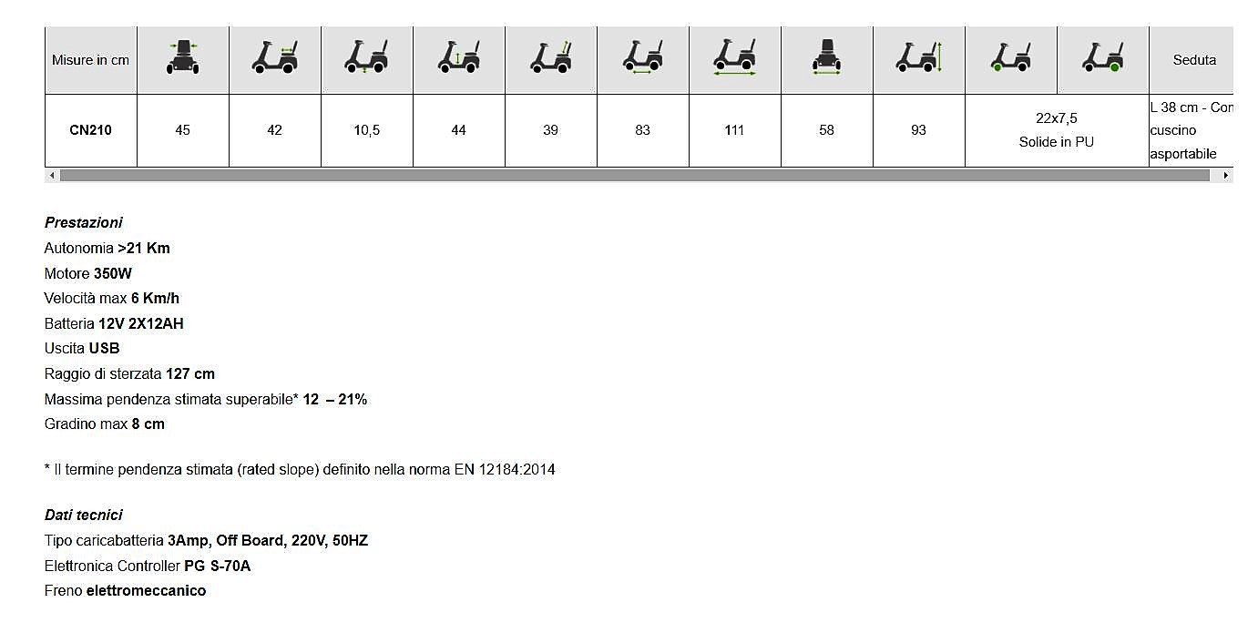 ** L’autonomia dello scooter può variare in base al peso del paziente, alla tipologia di percorso ed all’efficacia della batteria
