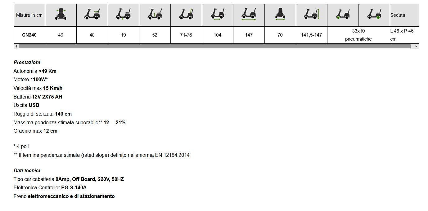 Uno scooter elettrico adatto sia per anziani che ai passeggeri disabili. La sua speciale carrozzeria è stata concepita per offrire comfort, sicurezza e facilità di guida. L'impianto frenante è elettromeccanico e si aziona, con estrema facilità, lasciando la leva dell'acceleratore. Questo meccanismo di frenata permette di arrestare la marcia anche in strade con pendenza. Le ruote garantiscono maggiore stabilità e la retromarcia semplifica le manovre di parcheggio.