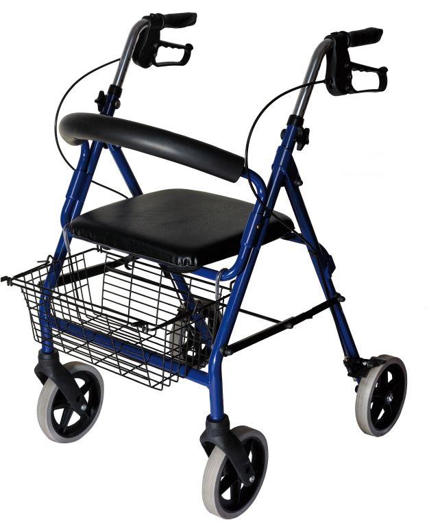 Rollator pieghevole con seduta e comodo cestino, impugnature regolabili in altezza, ruote piene da 20 cm. Freni posterioni sulle manopole di spinta e freno di stazionamento quando si usa la comoda seduta. Il vassoio in plexigass permette di trasportare oggetti mantenendo libere le mani. Sul fianco dx è previsto di serie un porta bastone/stampella. Adatto per esterno e interno. Struttura: Acciaio tubolare verniciato antigraffio Portata massima: Kg 130 Altezza reg. impugnature: Da cm 78 a cm 93 Ingombri aperto: L cm59; P cm 68 Ruote fisse: n.2 diam. 20 cm Ruote piroettanti: n. 2 da 20 cm Ruote frenanti: n. 2 posteriori Sedile: cm 38 x 15.5 Peso netto: Kg 8,5 Ingombro chiuso: 68x26x83 Codice di classificazione: 12.06.09.009 + 12.06.09.130 + 12.06.09.142 RDM: 81628