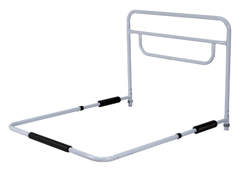 Sponda per letto universale fissa, adattabile a qualunque tipo di letto. Realizzata in tubolare di acciaio verniciato bianco. Regolabile a tre diverse altezze e munita di spessori in gomma antiscivolo.