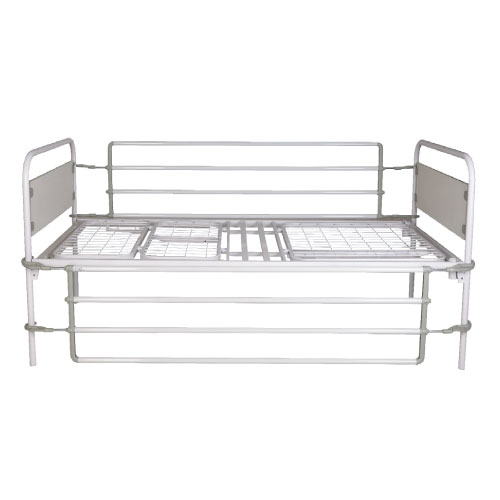 Sponde ribaltabili di contenimento per letto da degenza, realizzante in tubolare di acciaio bianco con ganci a molla per la tenuta. Questi ganci retrattili, permettono di ribaltare la sponda senza staccarla dal letto. Particolarmente adatte per i letti ( L1 - L3 - L5 - L6 _ L9 )