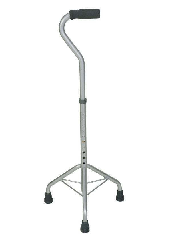 Pripode in alluminio, regolabile in altezza per mezzo di un bottone retrattile, impugnatura morbida antisdrucciolo, puntali in gomma antiscivolo.